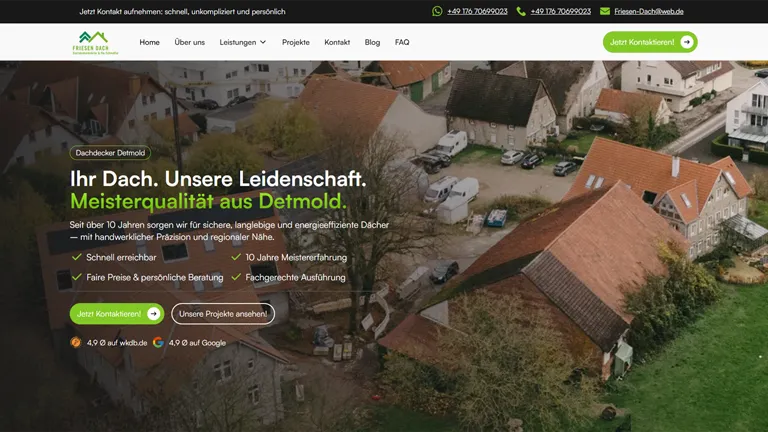Für Friesen Dachbau haben wir die Website komplett neu aufgesetzt, technisch optimiert und auf lokale Sichtbarkeit in der Region ausgerichtet — inklusive Landingpages für jede Leistung und Google My Business Optimierung.